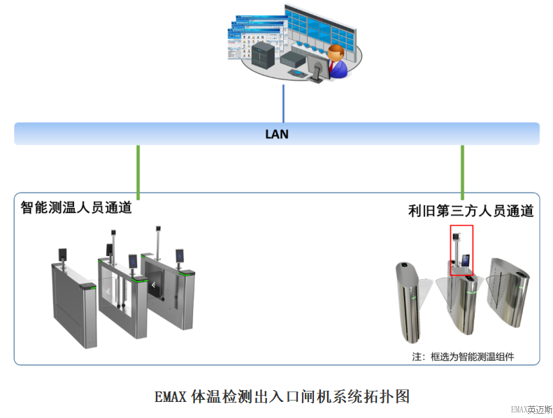 EMAX英邁斯速通門由(速通門+動(dòng)態(tài)人臉、門禁授權(quán)、微信訪客、電梯控制、考勤管理)等組成一套安全、高效、便捷的智能通道管理整體解決方案。